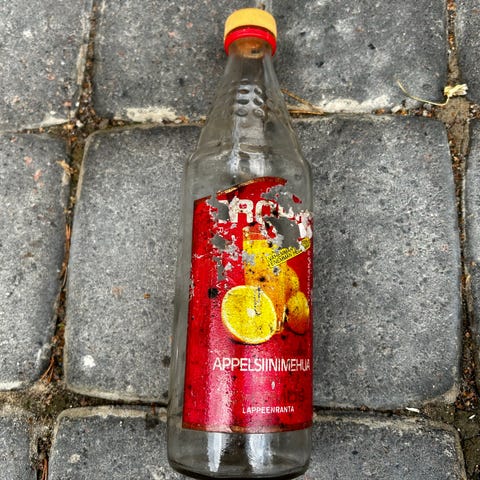 Annetaan kaksi Ikean lasipulloa. Olleet pyykinpesuaineille käytössä, pesty sen jälkeen. Tilavuus on arviolta noin 1-1,5 litraa (en mitannut).