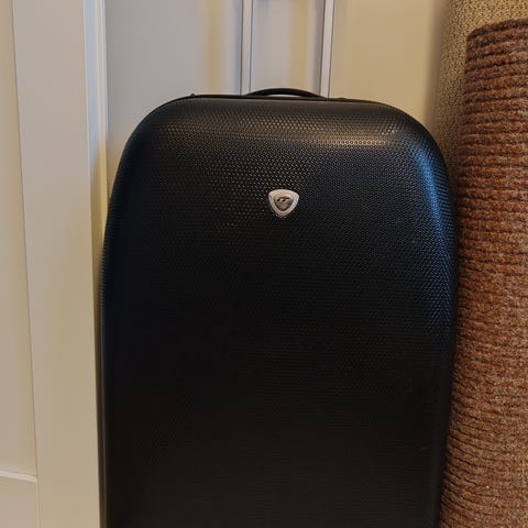 Kullanvärinen (korkeus 76 cm, paksuus 27 cm) tulee halutessaan kaupan päälle. Alareunassa on kolhu, ks. kuvat. Ei ole haitannut matkustamista viime reissulla.