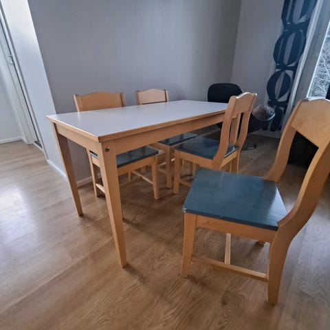 Lasten pyöreä pöytä ja tuolit vaaleasta puusta. Setti sisältää pyöreän pöydän ja kaksi tuolia, jotka sopivat päiväkoti-ikäisille lapsille. Kunnoksi laitettu kohtalainen, koska pöydän pintaan on tullut tussia, jota emme ole saaneet pesuaineella pois. Kunto on käytetty, mutta edelleen toimivassa kunnossa seuraavalle. VARATTU