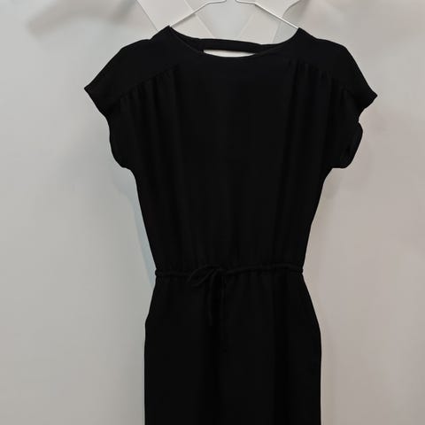 Hyväkuntoinen musta mekko. Koko lappu puuttuu, mutta uskoisin, mekon olevan S-M kokoa. Mekon pituus n. 69cm.
