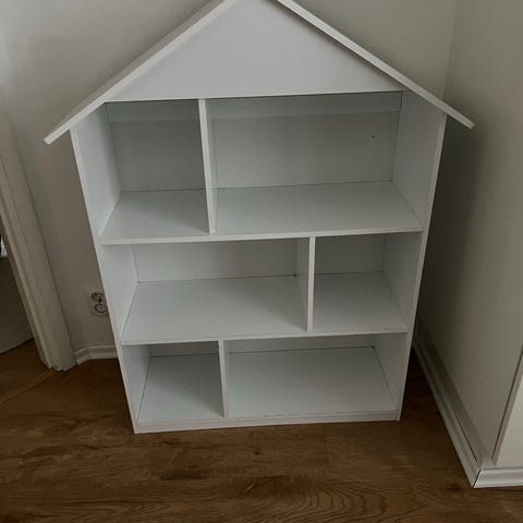 Söpö talohyllykkö säilytykseen tai barbileikkeihin. Katon ruuvit löysällä, pientä kulumaa ja tahraa siellä täällä. Nopeimmalle noutajalle Sarkolasta.