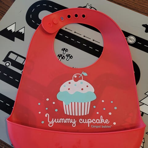 Hyväkuntoinen yhden käyttämä ruokalappu. Vain nouto.