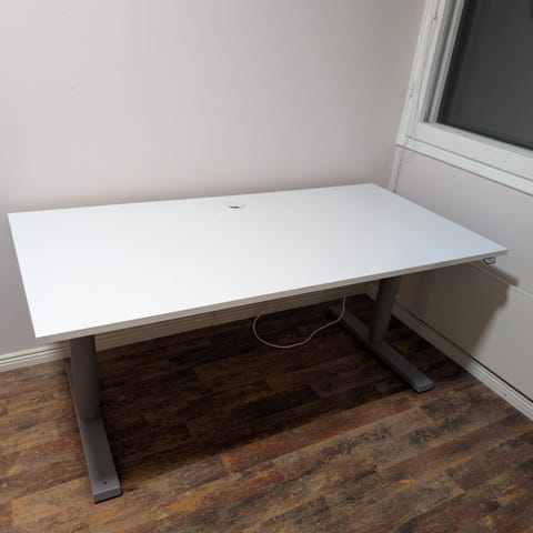 Valkoinen Martelan sähköpöydän kansi. Toisessa reunassa pieni naarmu.