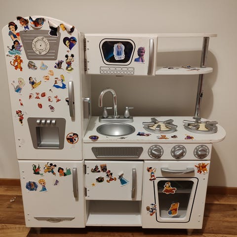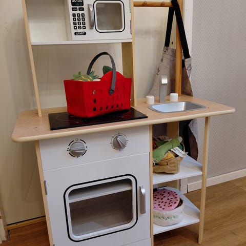 Myydään leikkikeittiö tarvikkeineen. Hellassa syttyy valo ja pitää rätisevää ääntä. Eläintalous. Nouto
