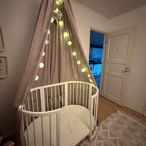 Satunnaisesti ollut käytössä koska lapsi nukkunut melkein aina perhepedissä. Puuttuvat pinnat tallella. Patja ei kuulu kauppaan