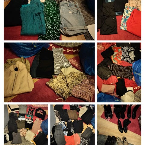 19 erilaista toppia, t-paitaa ja pitkähihaista erilaisissa väreissä. Kaikki paidat ovat XS-M väliltä. Kaikki ovat hyvässä kunnossa ja ehjiä. Myydään mieluiten pakettina hyvään hintaan. Laita viestiä, jos joku paidoista kiinnostaa yksittäisenä. Lähetys mahdollista ostajan maksaessa postikulut.