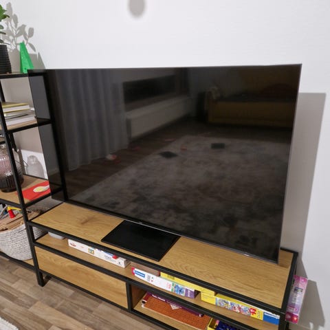 Tarpeettomaksi jäänyt uusi TV, vielä avaamattomassa paketissa.
