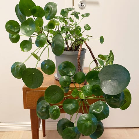 Myydään suureksi kasvanut kilpipiilea. Istutettu keväällä uuteen multaan. Lukuisia varsia, joista pari tuettu kepillä. Kasvanut valoisalla paikalla ikkunan vieressä.