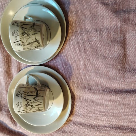 Esteri Tomulan ihanat Valmut kahvikupit tasseineen 6 kpl yht 50€