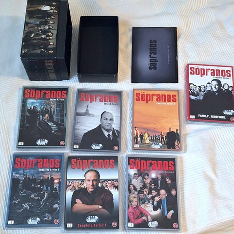 Hieno Sopranos boksi, Suomikansilla ja suomeksi tekstitettynä. Uusi/muoveissa. Paljon extroja. Koko sarja