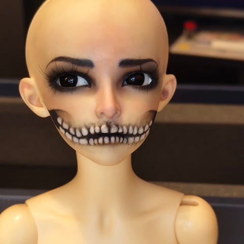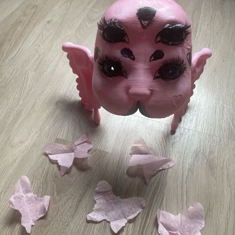 Tilaustyönä tehty Melanie Martinez Portals Maski. Hyllyllä ollut ja käytössä myös muutaman kerran mutta ei millään lailla kulunut. Nouto.