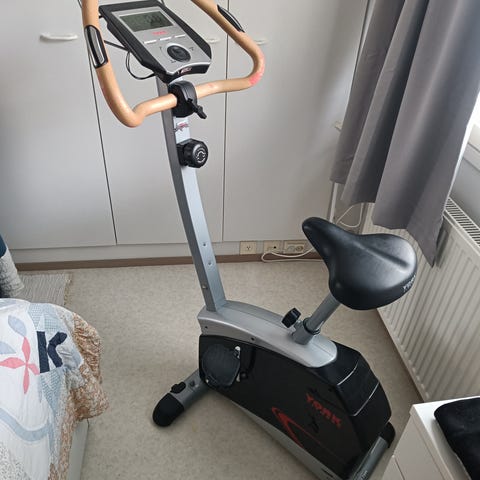 Ei aivan uusin mutta toimiva Tunturin kuntopyörä säädettävällä vastuksella. Näytöstä näkee ajan lisäksi mm. sykkeen. Tosi jämäkkää tekoa, ei turhaan heilu eikä natise. Säädettävä istuinkorkeus ja mukava satula. Tarvittaessa purettavissa, jolloin mahtuu autoon paremmin.