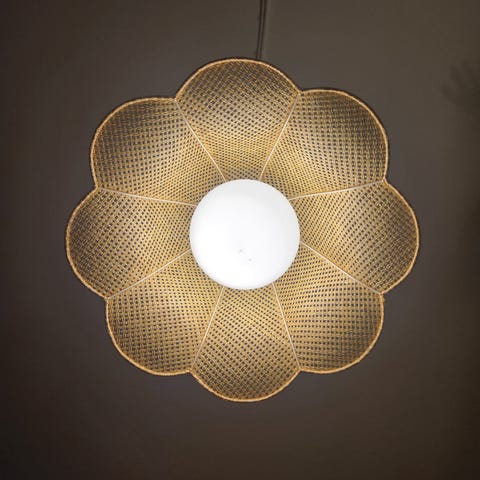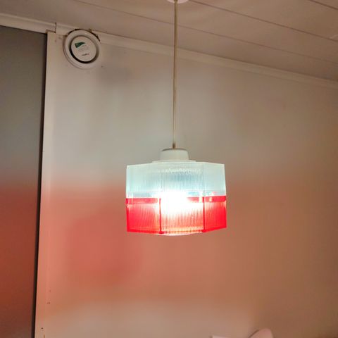 Kuvan retro kattovalaisin myynnissä, kupu lasia, uusi johto liittimineen sekä pistoke valmiina (maadoitettu). Hinta 20 euroa.