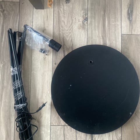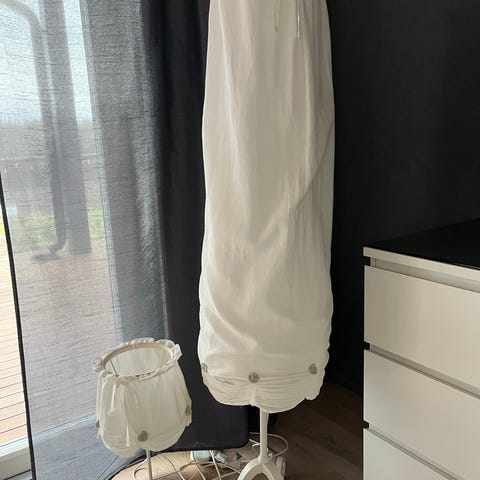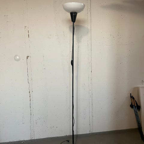 Skottorp-tyyppinen jalkalamppu. Alkuperäinen varjostin mennyt rikki mutta hauska ilman sitäkin ja halutessa mukaan pyöreä varjostin.
