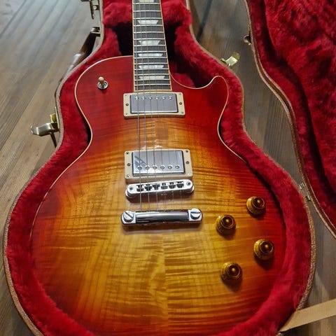 Erittäin siistikuntoinen ja kevytsoittoinen 2018 vuoden (USA) Gibson Thunderbird BCH Bright Cherry sähköbasso alkuperäisellä kovalla laukulla, säätöavaimilla ja papereilla. Vain kevyttä käytön jälkeä näkyvissä ja parissa kohtaa lakassa krakeloitumista.