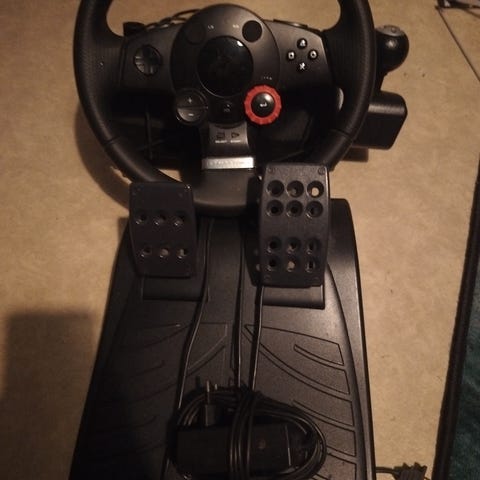 Logitech MOMO rattiohjain ja polkimet pelikäyttöön. Sisältää ohjauspyörän, kaasupolkimet ja jarrupolkimet. Liitännät USB- ja vanhemmat liitostyypit. Väri musta ja punainen. Soveltuu kilpa-ajopeleihin tietokoneella.