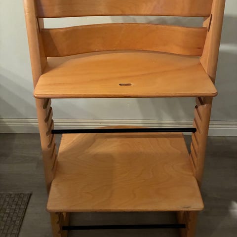 Myydään vanha ja hyvin palvellut Stokken tuoli. Ostettu käytettynä n. 10 vuotta sitten, eli ikää on :) Toimii kyllä, vaikka kolhuja toki löytyy.