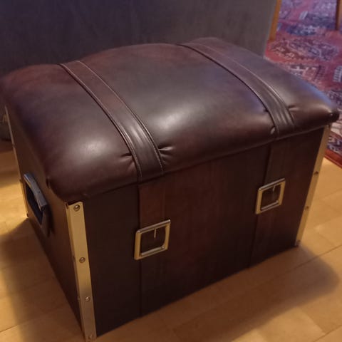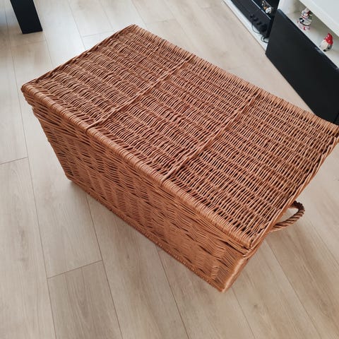 Valkoinen keinohanka arkku. Siisti ja hyväkuntoinen. Korkeus 30 cm, syvyys 29 cm, leveys 44 cm