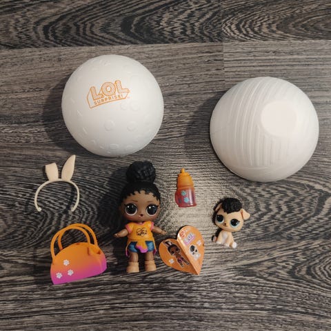 LOL surprise nukke ja lemmikki tarvikkeineen. Nuken takki ja kengät irroitettavissa.