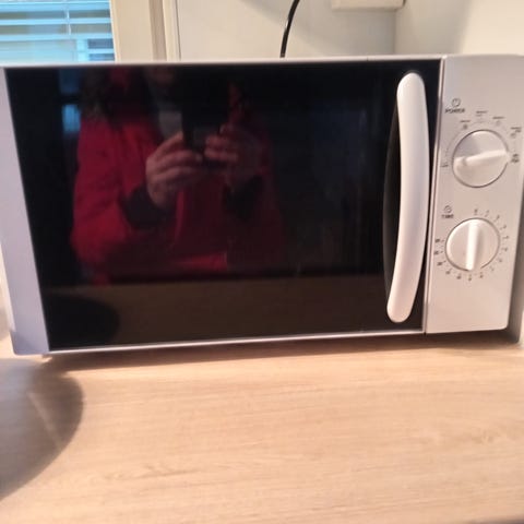 Teho 700 W, mekaaniset säätimet, myös sulatustoiminto (defrost).