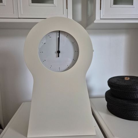 Pöytä tai seinäkello. Korkeus 48cm leveys 28 syvyys 14,5cm. Toimii ja pysyy ajassa. Nouto Espoo Laaksolahti.