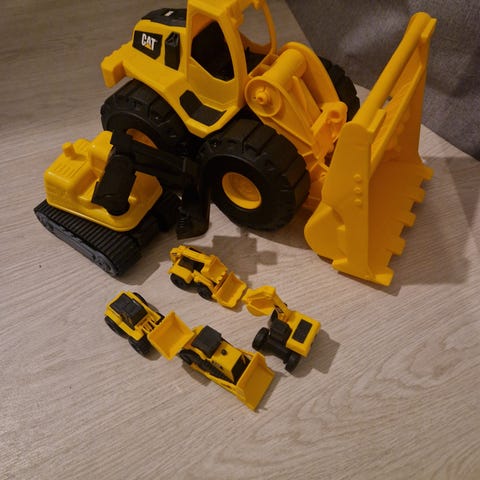 CAT rakennussarja, josta voi koota yhdellä ruuvimeisselillä joko puskutraktorin tai pyöräkuormaajan.