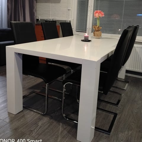 Koivuinen ruokailuryhmä. Pöytä ja 6 tuolia. Pöydän koko 80x160 cm. Nouto.