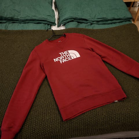 The North Face viininpunainen neulosmainen paita. Koko on kokolapun mukaan M, mutta vastaa minusta enemmän S kokoa. Kai-kai on n. 47-48cm.