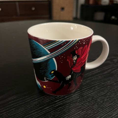 Arabia The Hobgoblin muki, jossa on kuvitus Hobgoblin-hahmosta. Astianpesukone- ja mikroaaltouuninkestävä.