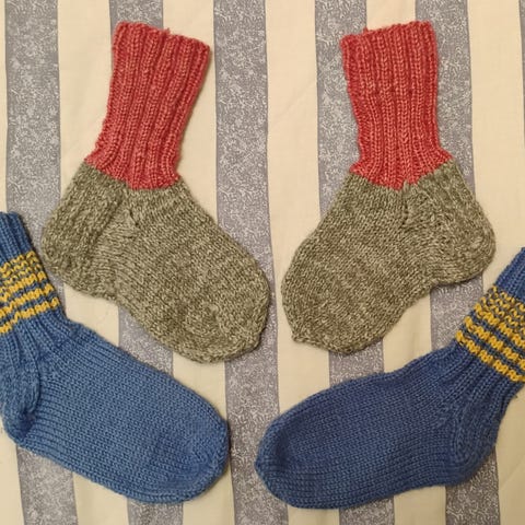 *Näitä on käytetty 4-vuotiaalla koon 28 DD Stepin talvikenkien päällä (ja ehkä jo 3-vuotiaana 27-koon kenkien päällä) kunnon pakkasilla. DD Step on ulkomitoiltaan minimalistinen paljasjalkakenkä, joten jykevämmässä kengässä saattaa sopia pienemmälle kokonumerolle. Teräosat kaksinkertaisesta 7-veljestä langasta. Varsi tehty sellaiseksi, että lapsen on helppo itsekin pukea. Pesu Ariel Sensitive + Serto Tunturipuro. Kunto hyvä käytetty.