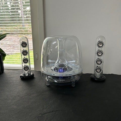 Ylimääräisenä vähän käytetty ja loistavassa kunnossa oleva kaiutinjärjestelmä, joka koostuu keskusyksikkönä toimivasta ja säädettävästä subwoofer-bassokaiuttimesta ja kahdesta nelielementtisestä pöytäkaiuttimesta. Mahtava äänenlaatu!