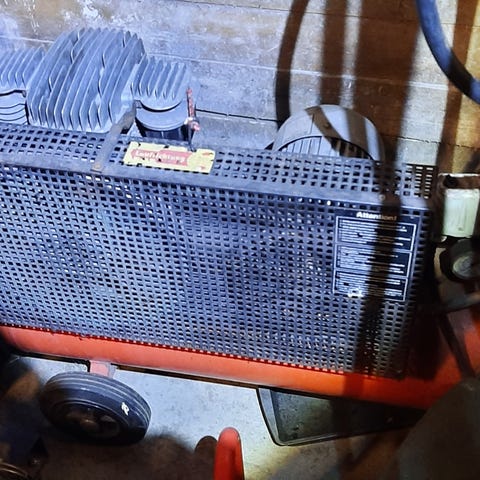 Hyvin vähällä käytöllä ollut kompressori. 600 litraa/minuutissa ilmavirtaa, 10 barin maksimipaine ja 100 litran säiliön tilavuus. 3 hp moottori, normaali valovirtakäyttöinen 16A.