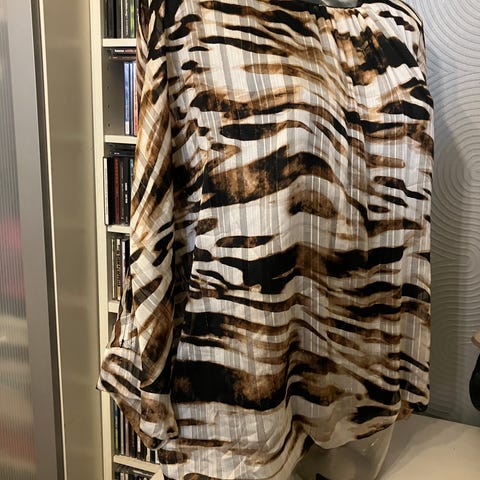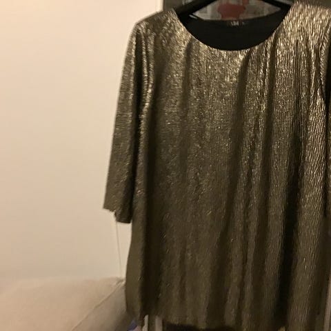 Myynnissä kuvan todella kaunis joustavaa polyesteriä oleva kauttaaltaan kultakuvioitu paita