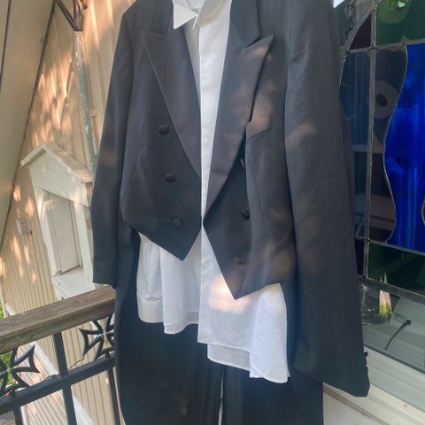 Musta frakin takki kokoa 50-52 villaa. Myynnissä siis pelkkä takki. Merkki- tai kokolappuja ei ole, räätälin käsityötä taitaa olla.