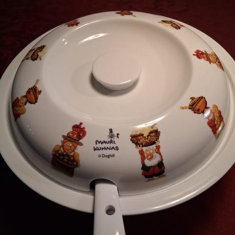 Valmistajan mukaan voidaan pestä astianpesukoneessa max 55 asteessa, meillä pesty muutaman kerran pesukoneessa 60 asteessa ja kuvioinnit sen kestäneet. Mikroaaltouunin käyttöä ei suositella.