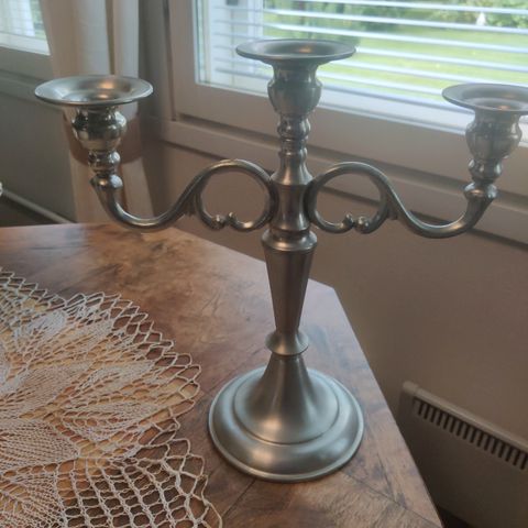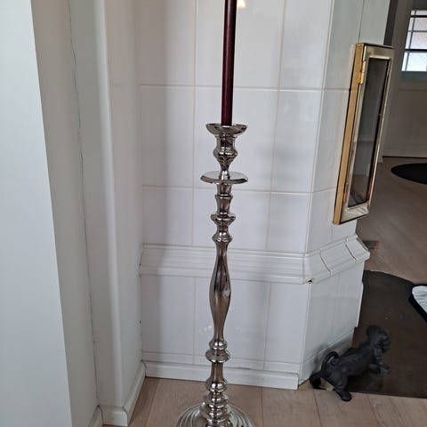 Hopeoitu kynttilänjalka yhdelle kruunukynttilälle. Korkea kynttilänjalka on kevyesti lakattu tummumisen estämiseksi. Saatavana myös 3 ja 5 kynttilälle. Hintaan sisältyy lasimansetti.