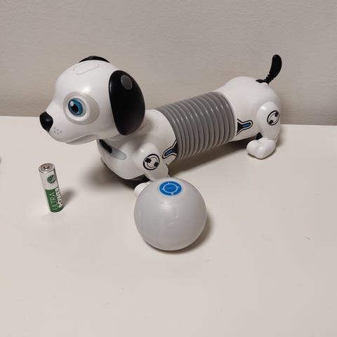 Animagic koiran korkeus on noin 24 cm. Tämä koira haukkuu ja heiluttaa häntää, kun sitä rapsuttaa korvan takaa ja sille puhuu.