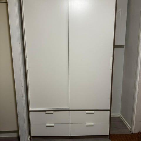 Myynnissä hyväkuntoinen vaatekaappi. Pientä kulumaa on ja se on huomioitu hinnassa. Ollut kiinnitettynä lattiaan sisäpuolelta.