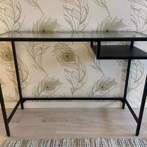 Kyseessä tämä tuote, mutta eri värissä: https://www.ikea.com/fi/fi/p/vittsjoe-tietokonepoeytae-mustanruskea-lasi-80221352/