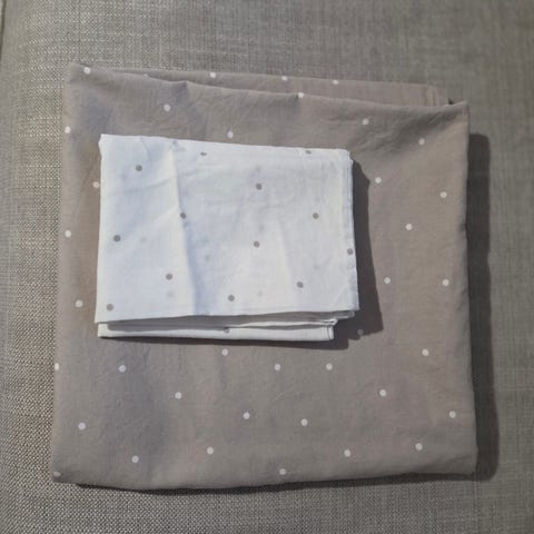 Lasten pussilakanasetti. Tyynyliina n. 42x37 ja pussilakana n.126x107. Useasti käytetty mutta siisti