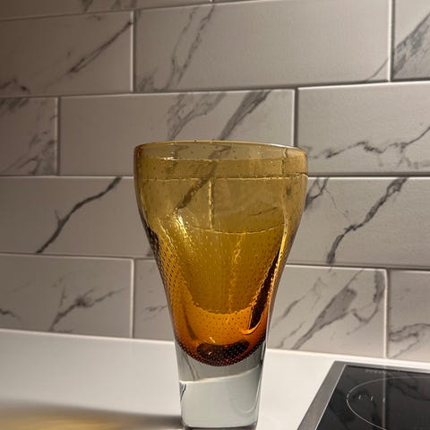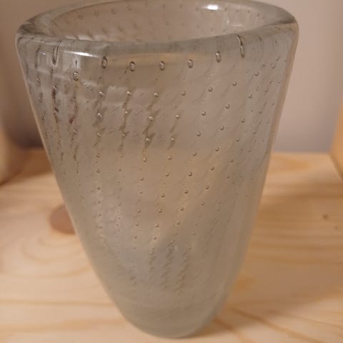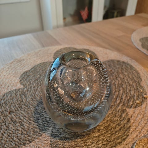 Gunnel Nymanin signeerattu maljakko. Harmillisesti haljennut sisältä. On ihan vesitiivis.