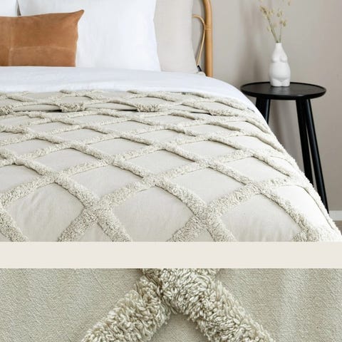 Kangaspuilla tehty sohvanpeitto