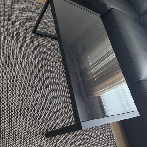 Musta sohvapöytä lasilla
