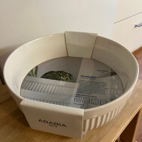 Arabian UuniKokki uunivuoka 2L. Halkaisija 23,5cm ja korkeus 7,5cm.