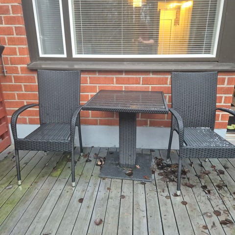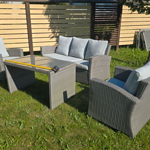 Terassikalusteet sohva, pöytä ja 2 tuolia