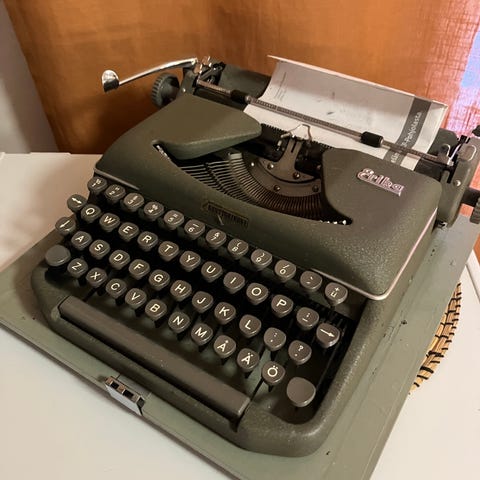 Silver seiko kirjoituskone. Ilmeisesti toimiva. Kannen kahva uupuu. Voidaan lähettää 10e postikuluin suomeen.