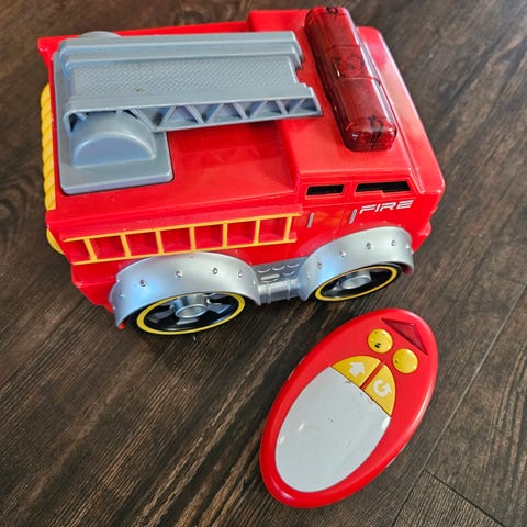Iso kauko-ohjattava paloauto. Ruiskuttaa myös vettä. Juuri testattu, että toimii. Patterit tulee mukana.
