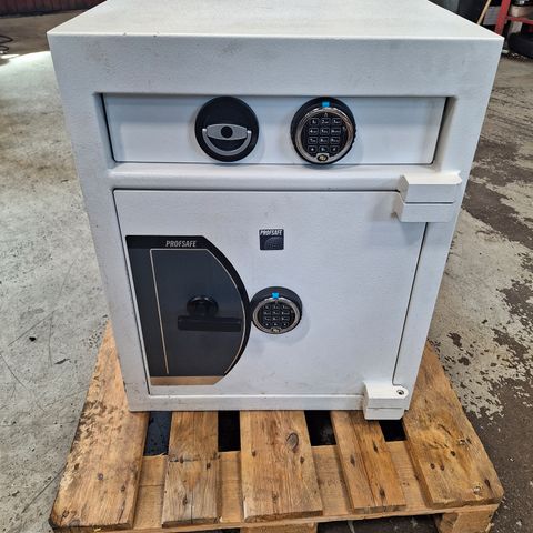 Kaso DataSafe DS4300 dataturvakaappi, mitat noin 116 x 74 x 72 cm, Secu E2000 numerolukko vaihdettavalla koodilla, sisällä 2 ulosvedettävää lokerohyllyä. Paino 380 kg. Kaappi lavan päällä ja nostetaan tarvittaessa trukilla kyytiin.