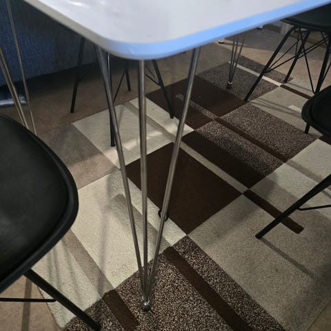 Ruokapöytä ja 4 tuolia , mitat 100cm korkeus 75cm, maalattu valkoiseksi.