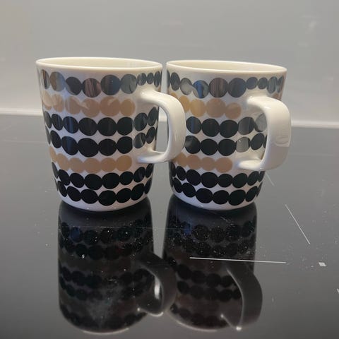 Marimekko Siirtolapuutarha -sarjan muki 2 kpl lautanen. Halutessaan saa kaupanpäälle toisen samanlaisen lautasen, mistä puuttuu pieni pala.